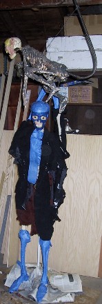 A lot of pre-work went into this one, just like her brother. The clothing used was purchased for cheap. A wire brush, rough hand saw and utility knife came to my aid for the shredding of the clothing. I selectively covered parts that I didn't want to have to bother putting skin on. The hand saw was used extensively to "scrape" the clothing giving it a very ragged look.