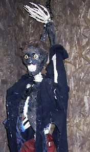 As mentioned on the main page, the pirate prisoner was the first addition to the room after the Jack the undead monkey. He didn't really fit with the original concept of the room, but that's the great thing about a haunted house - no one really knows the difference. (In fact, past experience has shown that few people even recognize a scene from a movie as being such. Most are too busy waiting nervously for someone to jump out at them.)