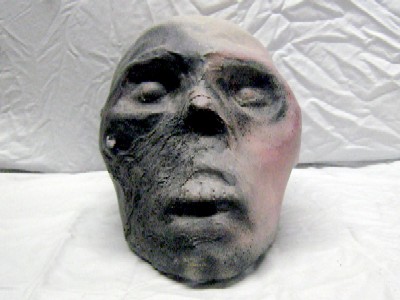 When I finished scultping him, I was quite pleased with the likeness. The only trouble was...so what? Few people who visit haunted houses are not very likely to know who the iceman was. The ones who were probably wouldn't be stopping to admire the thing; they'd be too busy looking for the next person who would jump out at them. So while he was a nice piece, he wasn't really much good for the haunted house scene. So he kind of sat around, finished and only partially painted