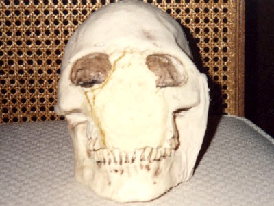 The biggest part of this prop was actually the easiest. I winced a bit when I was required to take a perfectly good polyfoam skull and remove 50% of its features. Because this is an early prop, I hadn't really come across the use of Model Magic yet. So I used tissue paper and latex to create the face of the first version. Being female, the prop presented me with some new challenges. The most curious was how to apply make-up. Fortunately I have sisters. So I asked them for advice in this area, and, following a blank stare, got some useful suggestions. (I hope I did a nice job - I'd hate to think she didn't look good. Erm...