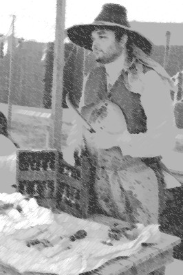 I also met Haunting Lily and her husband (Edward O'Keefe) today. Several folks stained the lanterns that Fayma and Tony Callahan bought for the event. Aminjiria brought what I believe is his entire extended family and staked camp. They then proceeded to make food for everyone in the site (except us vegetarians...alas.) Willie Wobble set up the neatest spread I think I have seen (he has a very comfy looking cot). The crew is forming up!