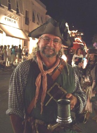 At left, Captain Jim in downtown Key West during the Parade with his period-correct and location appropriate tankard. He will definitely be one of the good surgeon's patients next year...he just doesn't know it yet.
