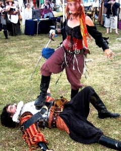 Above left: The conquistadors take Spike, center: William senses a trap. Right: The pirates swoop in and trap Doug the conquistador. Below left: Scarlett Jai grabs conquistador Deadeye's pike. Center: and traps him. Right: She turns guard duty over to Iron Nigel with Deadeye's own pike.
