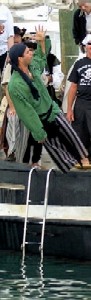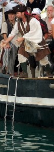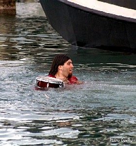 The event is pretty self-explanatory. You have to walk the plank. Of course, point are awarded for style and that is the interesting part. It still pretty well results in what you see at left. This year some prat from the Discovery Channel was involved in all of this. He's trying to sell a show on entering weird contests to them. So he's was around as well.