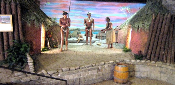 The first diorama at the Fountain was directly behind the girl parsing out the little plastic cups of water. It appeared to feature Ponce and the boys coming up the beach in the15th c. The other diorama contained several native Americans going about their daily lives in a stiff manikin-like way. The best part of that diorama was a small native American boy who was chopping on a large branch. He had apparently been chopping for a long time because he seemed to have worn out the motor that kept his arm going up and down, causing it to rise slowly and then jerk down suddenly. Either that or they were trying to represent some sort of strange nervous system issues. I took a bunch of pictures trying to capture the motion, but it eluded me. (Diosa said, "You're not going to put that in the journal...you are!")